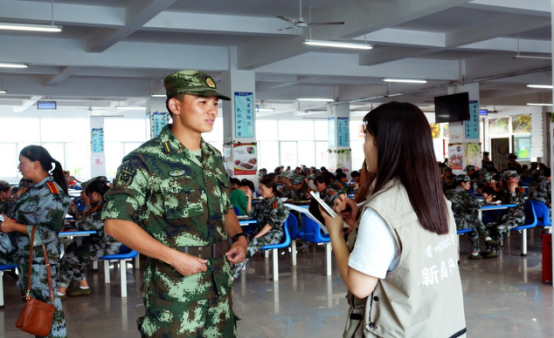 初见袁皓宇教官时已是黄昏时分,辛苦带训一天后的他看起来依然精神饱满、神采奕奕,趁着吃饭的时间,他才肯停下来接受记者的采访。他身着合体的绿色军装,配上军帽,腰束武装带,脚踩军鞋,尽显英姿勃勃的风采;他有着军人特有的气质,庄重而冷峻,利落的短发,一天下来不知已被汗水浸湿了几次;那双炯炯有神、坚定的目光下,埋藏着炽热的爱国情怀。